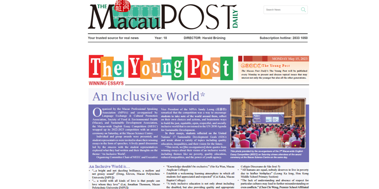 The Macau Post Daily is a media partner of the Macao-wide English Essay Competition. Thank you for supporting us!